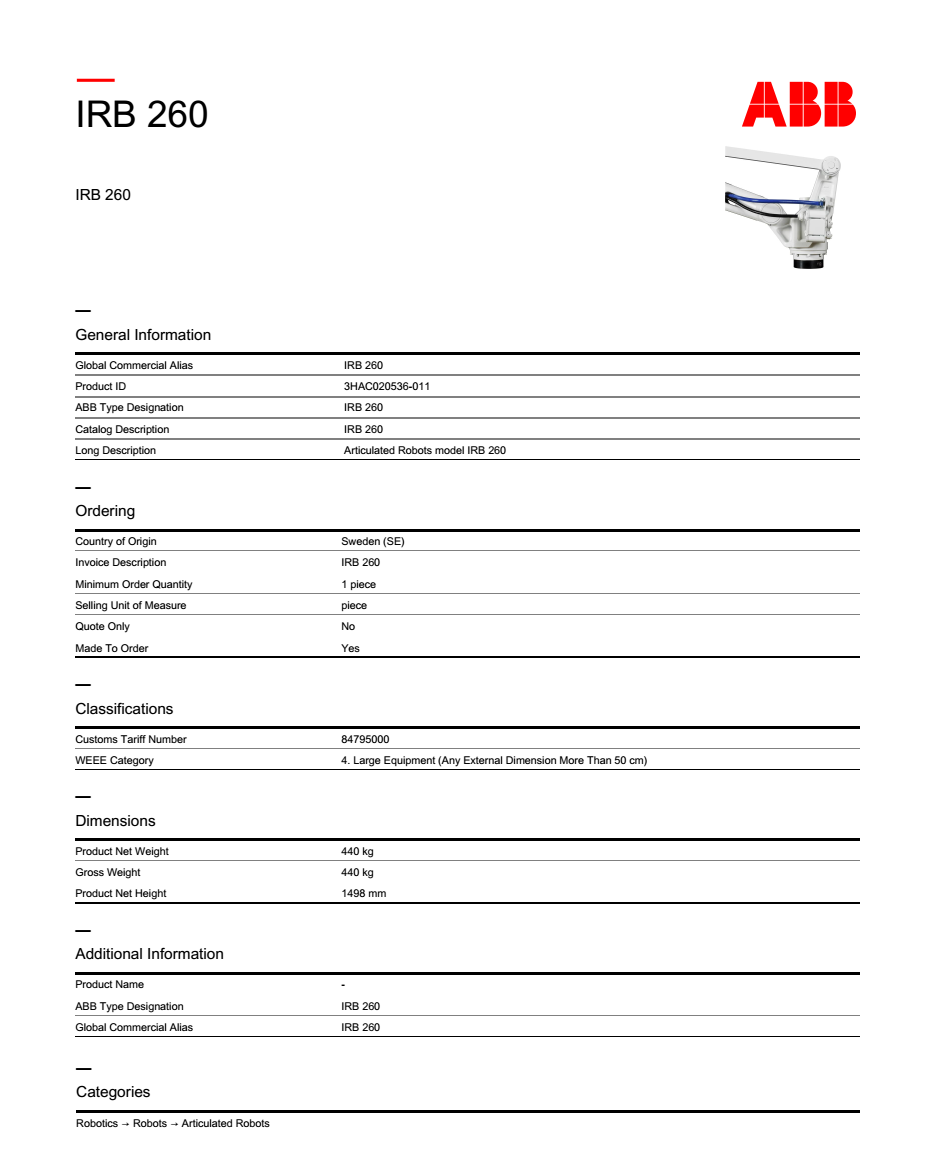 IRB 260工业机器人技术参数