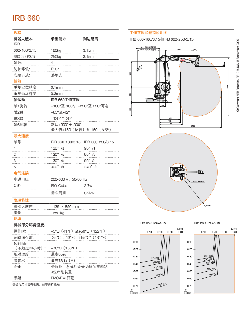 轴数:4荷重:180kg工作范围:3150mm重复定位精度:0.05mm版本:码垛版